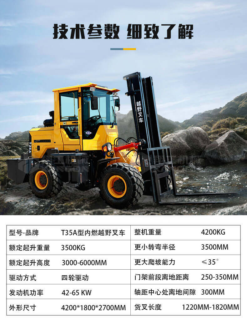 3.普通叉車只能在平整的路面上作業,而越野叉車既可以在普通路面上作業,還可以在山路泥路崎嶇道路作業,輪胎抓地力強,不打滑。