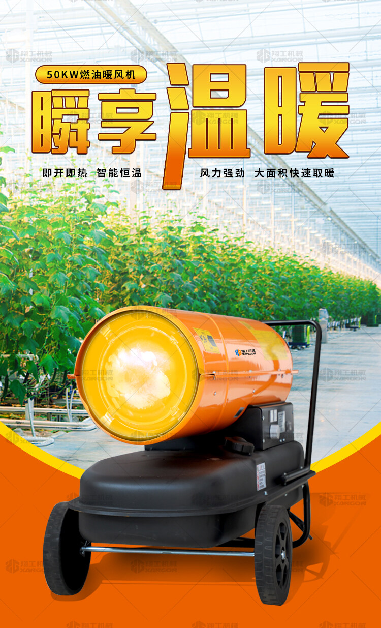 燃油暖風(fēng)機(jī)可對禽畜取暖,育雛取暖,花卉養(yǎng)殖,大棚蔬菜瓜 果,商場,車間,展會進(jìn)行取暖。