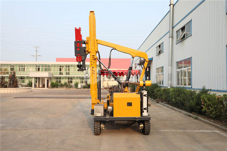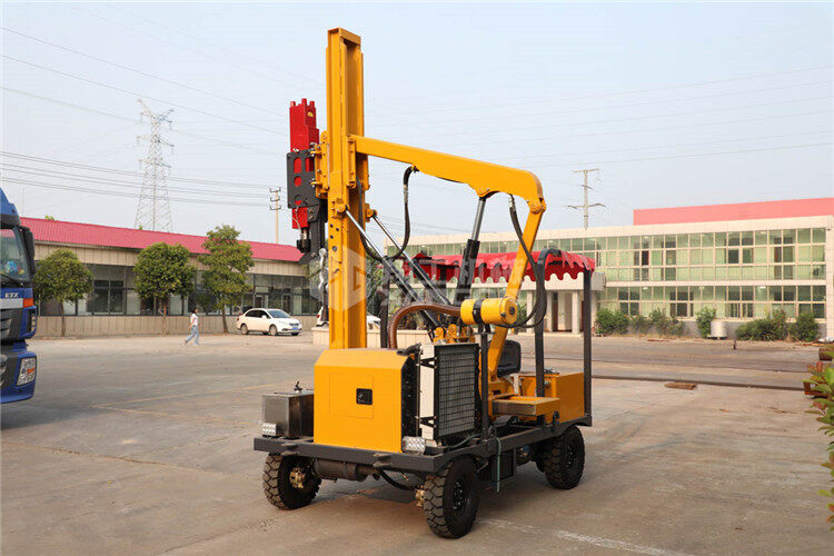 小四輪打樁機是護欄打拔鉆一體機的同類產品,也是用于公路波形護欄的安裝。該機采用柴油動力,全液壓機械傳動,具有行駛輕便、打樁精度高、經久耐用、節能環保等特點,特別適用于公路護欄安裝、維修和搶修的野外工程施工。